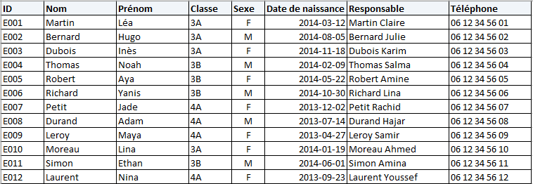 Le fichier calcule les moyennes utiles, le pourcentage d’acquis, l’historique trié.