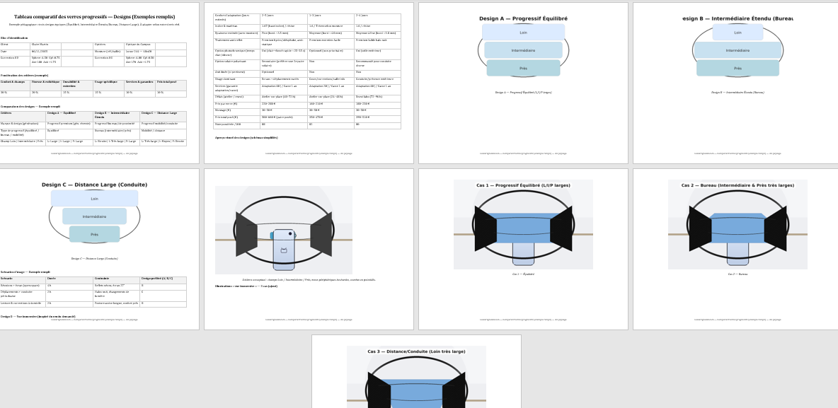 Les opticiens, les ophtalmologistes et autres professionnels de la santé oculaire trouveraient ce tableau utile pour conseiller leurs patients sur le choix des verres progressifs les mieux adaptés à leurs besoins visuels spécifiques. Il leur fournirait des informations précieuses pour guider leurs recommandations et offrir un service personnalisé à leurs clients.