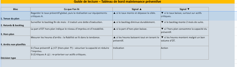 Tableau de Bord de Maintenance Préventive : Exercices d’Analyse des Indicateurs