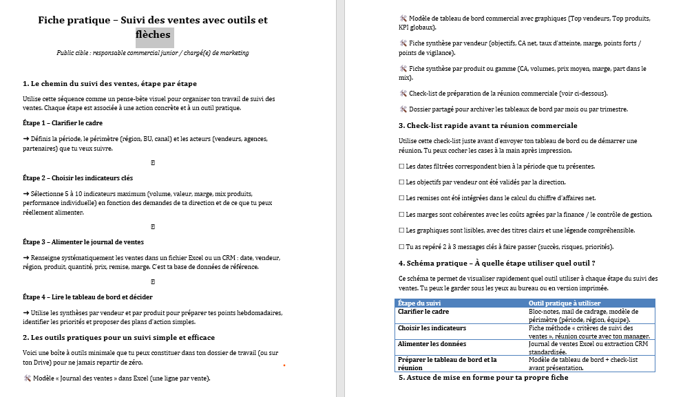 Un modèle de suivi des ventes n’a d’intérêt que s’il trouve sa place dans les rituels de l’équipe. Ce tableau de bord avec double baromètre a été pensé pour s’intégrer naturellement dans la vie commerciale.