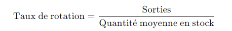 Taux de rotation des stocks : Cet indicateur montre combien de fois un produit a été renouvelé dans une période donnée. Il se calcule ainsi :