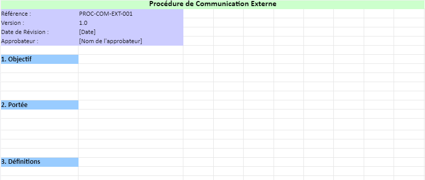 Cet exemple de procédure de communication externe fournit une structure claire et détaillée, permettant à votre organisation de diffuser efficacement les informations pertinentes aux parties intéressées externes, tout en assurant la conformité avec les exigences de l’ISO 9001.