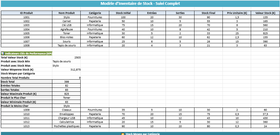 - Calcul automatisé du stock moyen par catégorie