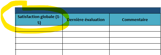 | Satisfaction | Note de satisfaction de 1 à 5 |
