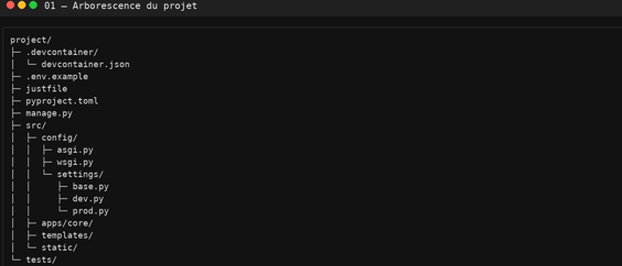 3) Arborescence Django “opinionated”