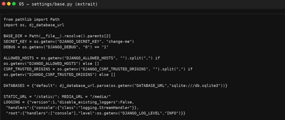 5) Settings 12-Factor : sobres mais affûtés