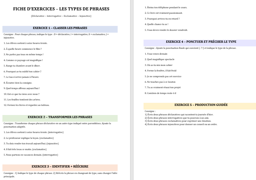 En travaillant régulièrement avec ces exercices, tu apprendras à reconnaître les types de phrases plus vite, à mieux écrire tes propres textes et à te corriger avec plus d’autonomie.