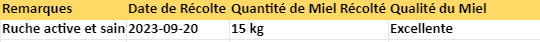 - Date et type de traitement appliqué (contre les varroas, par exemple)