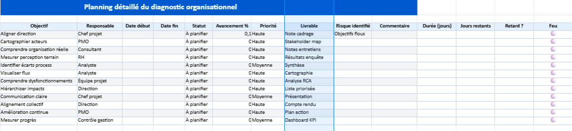 • Étapes : Description de chaque étape (de la définition des objectifs à l’utilisation des outils Excel pour l’automatisation).