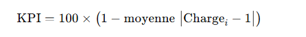 - Idée : mesure l’écart moyen à la cible 100 % (charge = 1,00).