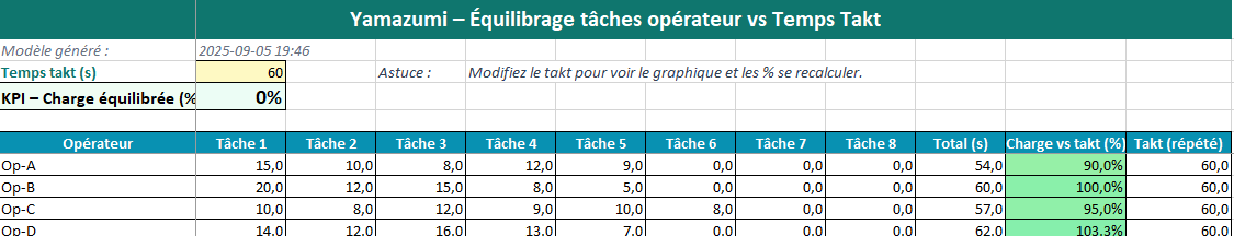 Mode d’emploi — Fichier Excel « Yamazumi – Équilibrage tâches vs temps takt »