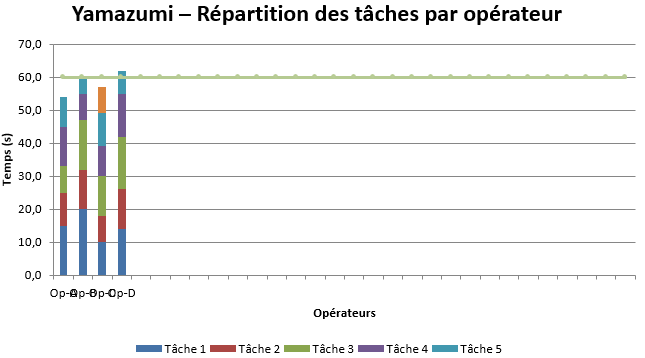 - Barres empilées : séquences de tâches (Tâche 1, Tâche 2, …) qui composent le cycle de l’opérateur.